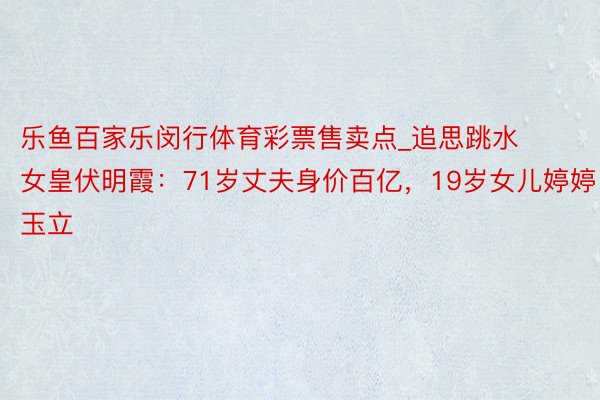 可要论到跳水界嫁朱门的“始祖”,那等于跳水女皇伏明霞了。