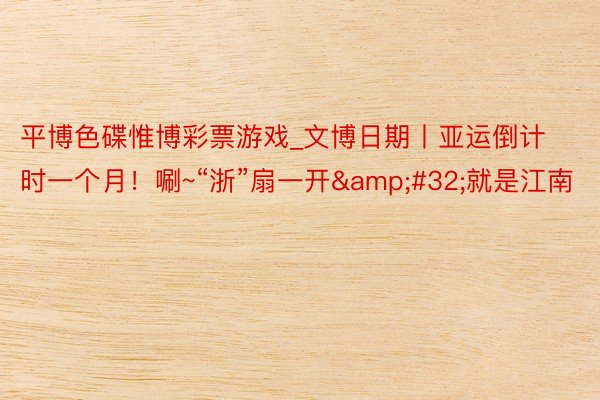 平博色碟惟博彩票游戏_文博日期丨亚运倒计时一个月!唰~“浙”扇一开 就是江南