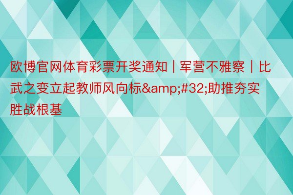 欧博官网体育彩票开奖通知 | 军营不雅察|比武之变立起教师风向标 助推夯实胜战根基