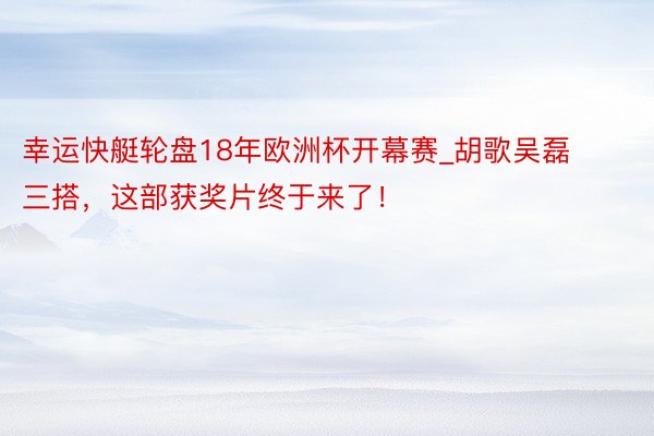 幸运快艇轮盘18年欧洲杯开幕赛_胡歌吴磊三搭,这部获奖片终于来了!