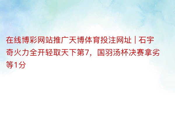 在线博彩网站推广天博体育投注网址 | 石宇奇火力全开轻取天下第7,国羽汤杯决赛拿劣等1分