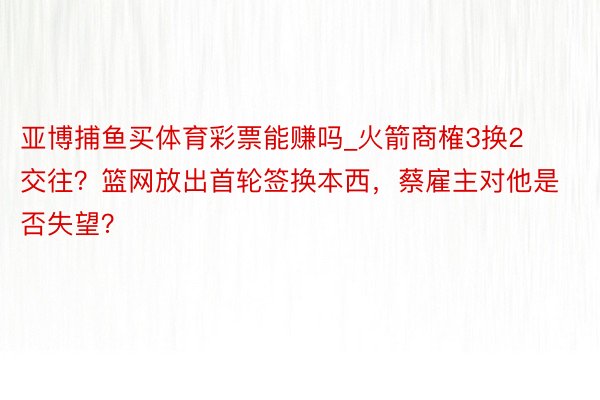 亚博捕鱼买体育彩票能赚吗_火箭商榷3换2交往?篮网放出首轮签换本西,蔡雇主对他是否失望?