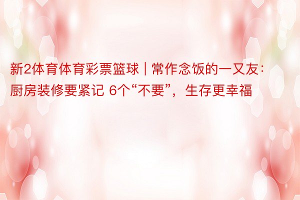 新2体育体育彩票篮球 | 常作念饭的一又友:厨房装修要紧记 6个“不要”,生存更幸福