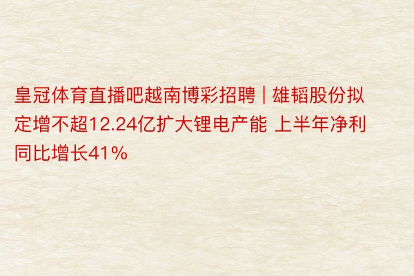 皇冠体育直播吧越南博彩招聘 | 雄韬股份拟定增不超12.24亿扩大锂电产能 上半年净利同比增长41%