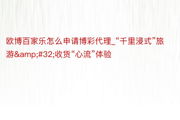 欧博百家乐怎么申请博彩代理_“千里浸式”旅游 收货“心流”体验