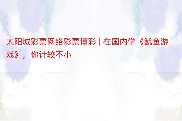 太阳城彩票网络彩票博彩 | 在国内学《鱿鱼游戏》,你计较不小