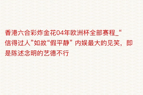 香港六合彩炸金花04年欧洲杯全部赛程_“信得过人”如故“假平静” 内娱最大的见笑,即是陈述念明的艺德不行
