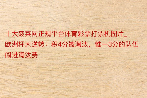 十大菠菜网正规平台体育彩票打票机图片_欧洲杯大逆转:积4分被淘汰,惟一3分的队伍闯进淘汰赛
