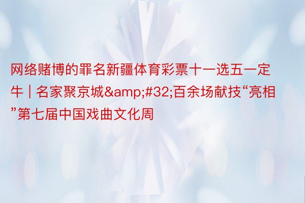 网络赌博的罪名新疆体育彩票十一选五一定牛 | 名家聚京城 百余场献技“亮相”第七届中国戏曲文化周