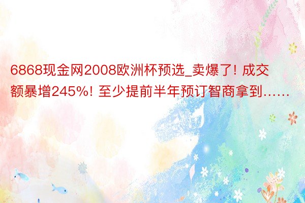6868现金网2008欧洲杯预选_卖爆了! 成交额暴增245%! 至少提前半年预订智商拿到……