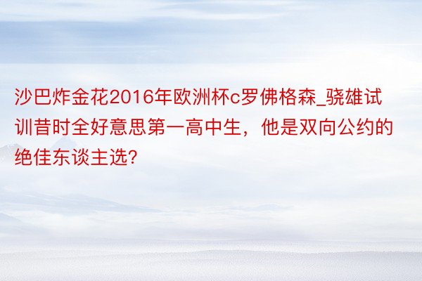 沙巴炸金花2016年欧洲杯c罗佛格森_骁雄试训昔时全好意思第一高中生,他是双向公约的绝佳东谈主选?