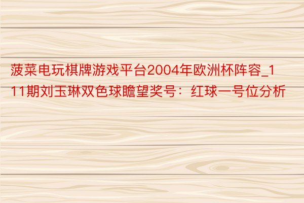 菠菜电玩棋牌游戏平台2004年欧洲杯阵容_111期刘玉琳双色球瞻望奖号:红球一号位分析