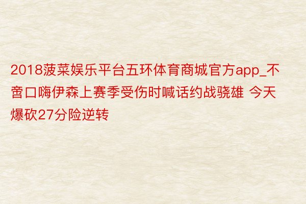 2018菠菜娱乐平台五环体育商城官方app_不啻口嗨伊森上赛季受伤时喊话约战骁雄 今天爆砍27分险逆转