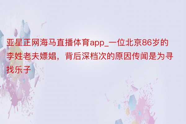 亚星正网海马直播体育app_一位北京86岁的李姓老夫嫖娼,背后深档次的原因传闻是为寻找乐子
