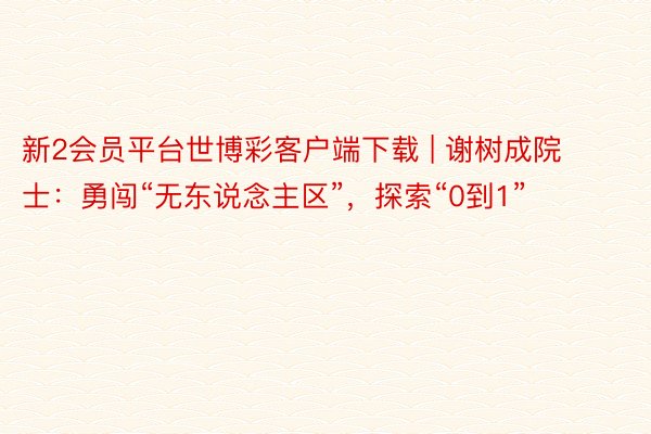 新2会员平台世博彩客户端下载 | 谢树成院士:勇闯“无东说念主区”,探索“0到1”