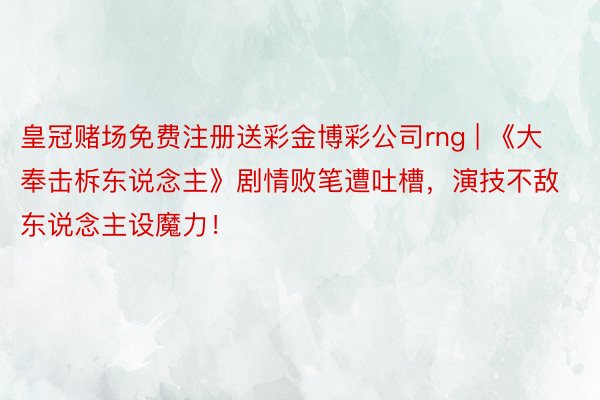 皇冠赌场免费注册送彩金博彩公司rng | 《大奉击柝东说念主》剧情败笔遭吐槽,演技不敌东说念主设魔力!