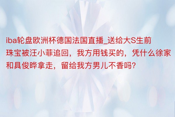 iba轮盘欧洲杯德国法国直播_送给大S生前珠宝被汪小菲追回,我方用钱买的,凭什么徐家和具俊晔拿走,留给我方男儿不香吗?