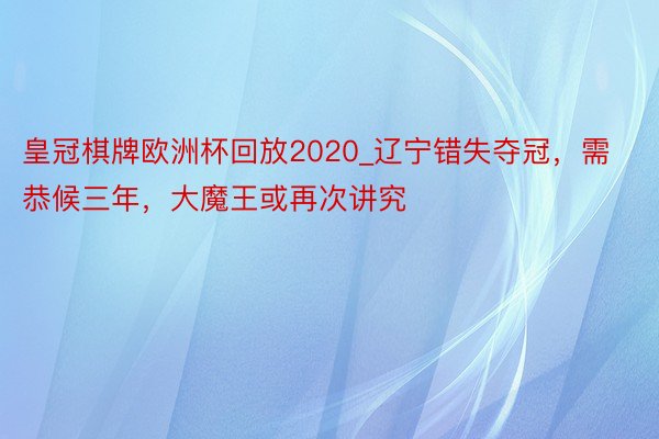 皇冠棋牌欧洲杯回放2020_辽宁错失夺冠,需恭候三年,大魔王或再次讲究