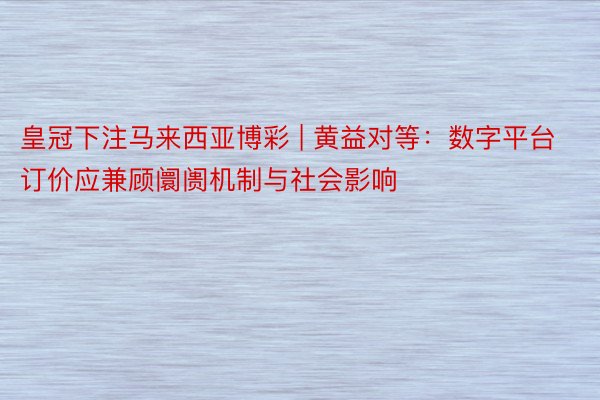 皇冠下注马来西亚博彩 | 黄益对等:数字平台订价应兼顾阛阓机制与社会影响