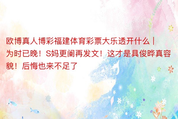 欧博真人博彩福建体育彩票大乐透开什么 | 为时已晚!S妈更阑再发文!这才是具俊晔真容貌!后悔也来不足了