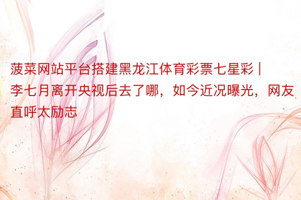 菠菜网站平台搭建黑龙江体育彩票七星彩 | 李七月离开央视后去了哪,如今近况曝光,网友直呼太励志