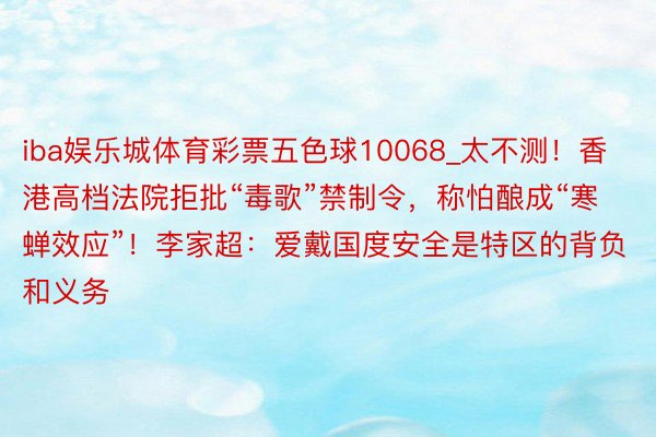 iba娱乐城体育彩票五色球10068_太不测!香港高档法院拒批“毒歌”禁制令,称怕酿成“寒蝉效应”!李家超:爱戴国度安全是特区的背负和义务
