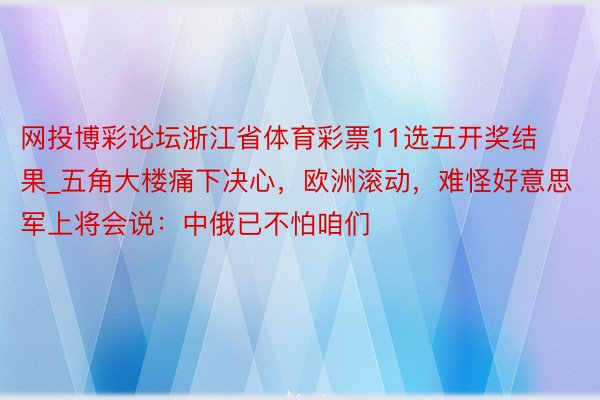 网投博彩论坛浙江省体育彩票11选五开奖结果_五角大楼痛下决心,欧洲滚动,难怪好意思军上将会说:中俄已不怕咱们