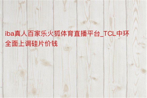 iba真人百家乐火狐体育直播平台_TCL中环全面上调硅片价钱