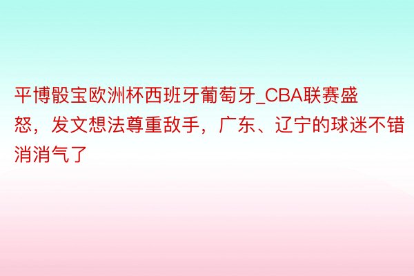 平博骰宝欧洲杯西班牙葡萄牙_CBA联赛盛怒,发文想法尊重敌手,广东、辽宁的球迷不错消消气了