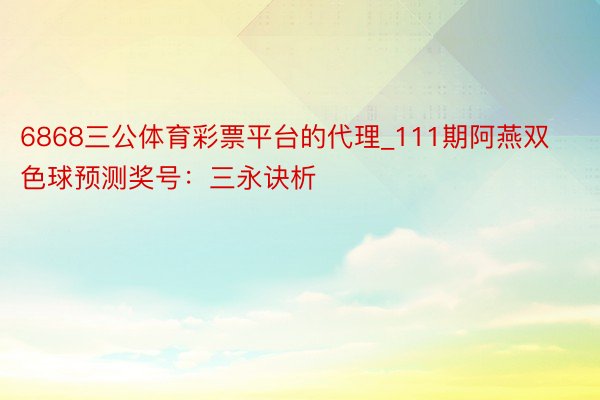 6868三公体育彩票平台的代理_111期阿燕双色球预测奖号:三永诀析