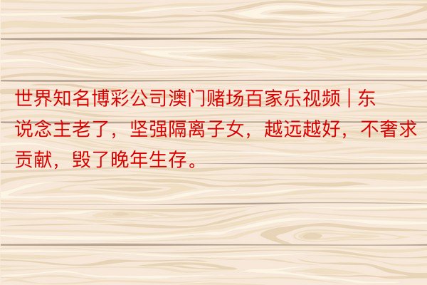 世界知名博彩公司澳门赌场百家乐视频 | 东说念主老了,坚强隔离子女,越远越好,不奢求贡献,毁了晚年生存。