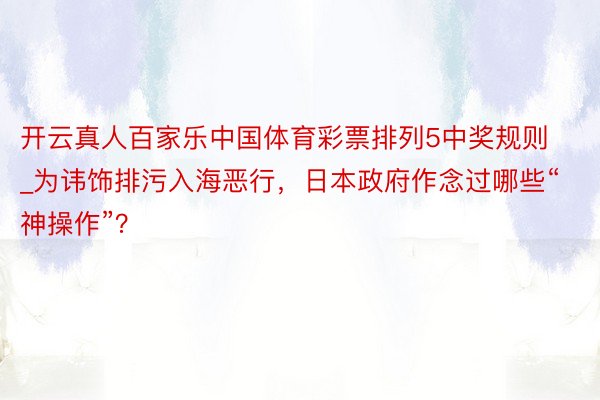 开云真人百家乐中国体育彩票排列5中奖规则_为讳饰排污入海恶行,日本政府作念过哪些“神操作”?