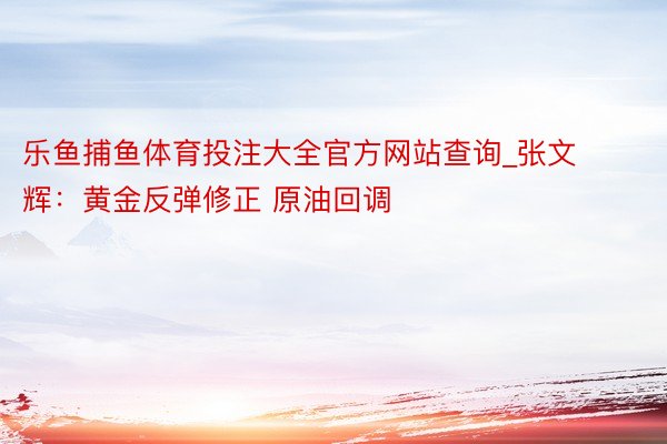 乐鱼捕鱼体育投注大全官方网站查询_张文辉:黄金反弹修正 原油回调