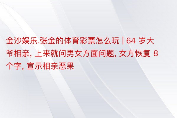 64 岁大爷与 60 岁大妈相亲全球最大最正规赌场网,首次碰头就问生理方面能不成得志我方,女方恢复 8 个字,成功文书相亲恶果。