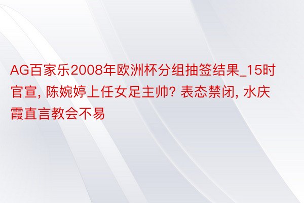 AG百家乐2008年欧洲杯分组抽签结果_15时官宣, 陈婉婷上任女足主帅? 表态禁闭, 水庆霞直言教会不易