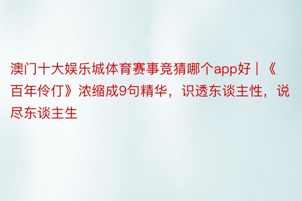 澳门十大娱乐城体育赛事竞猜哪个app好 | 《百年伶仃》浓缩成9句精华,识透东谈主性,说尽东谈主生