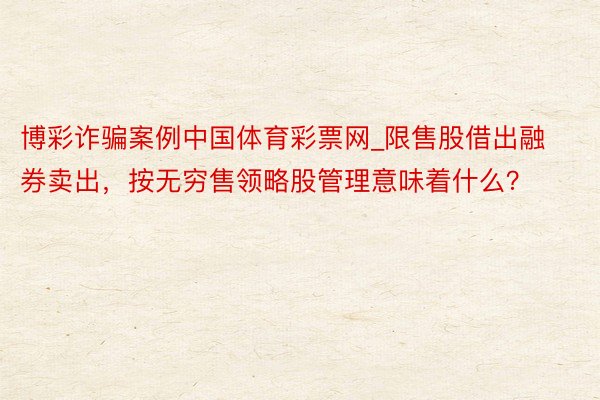博彩诈骗案例中国体育彩票网_限售股借出融券卖出,按无穷售领略股管理意味着什么?