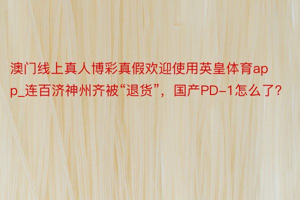澳门线上真人博彩真假欢迎使用英皇体育app_连百济神州齐被“退货”,国产PD-1怎么了?
