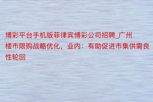 博彩平台手机版菲律宾博彩公司招聘_广州楼市限购战略优化,业内:有助促进市集供需良性轮回