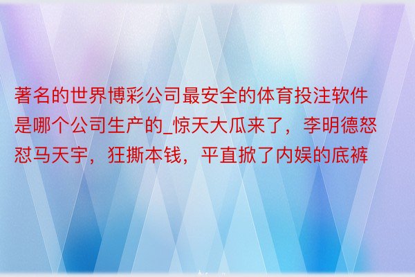 著名的世界博彩公司最安全的体育投注软件是哪个公司生产的_惊天大瓜来了,李明德怒怼马天宇,狂撕本钱,平直掀了内娱的底裤