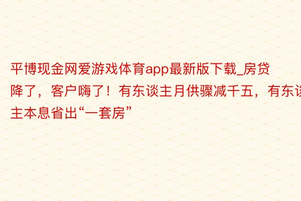 平博现金网爱游戏体育app最新版下载_房贷降了,客户嗨了!有东谈主月供骤减千五,有东谈主本息省出“一套房”