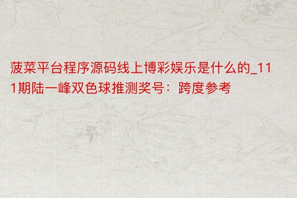 菠菜平台程序源码线上博彩娱乐是什么的_111期陆一峰双色球推测奖号:跨度参考