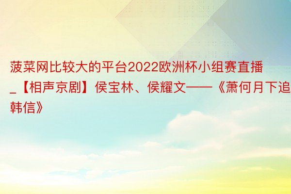 菠菜网比较大的平台2022欧洲杯小组赛直播_【相声京剧】侯宝林、侯耀文——《萧何月下追韩信》
