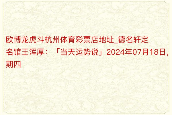 欧博龙虎斗杭州体育彩票店地址_德名轩定名馆王浑厚:「当天运势说」2024年07月18日,星期四