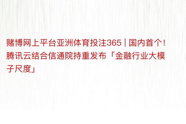 赌博网上平台亚洲体育投注365 | 国内首个!腾讯云结合信通院持重发布「金融行业大模子尺度」