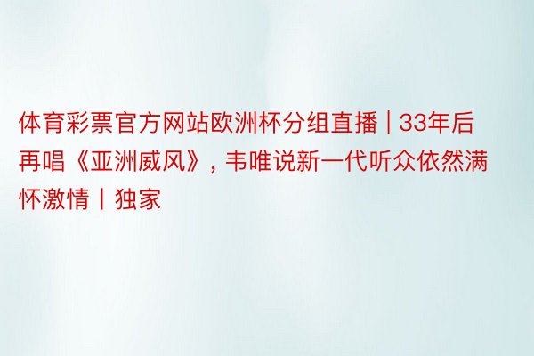 体育彩票官方网站欧洲杯分组直播 | 33年后再唱《亚洲威风》, 韦唯说新一代听众依然满怀激情丨独家