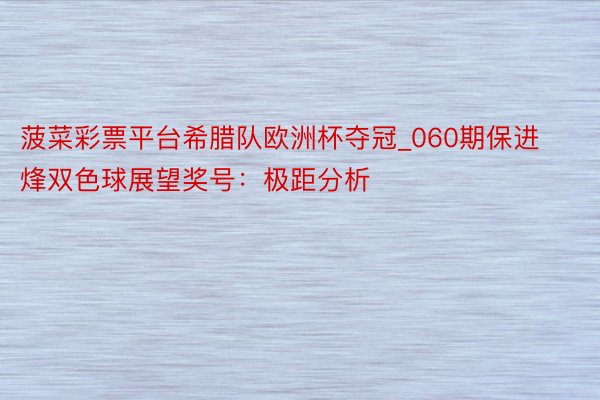 菠菜彩票平台希腊队欧洲杯夺冠_060期保进烽双色球展望奖号:极距分析