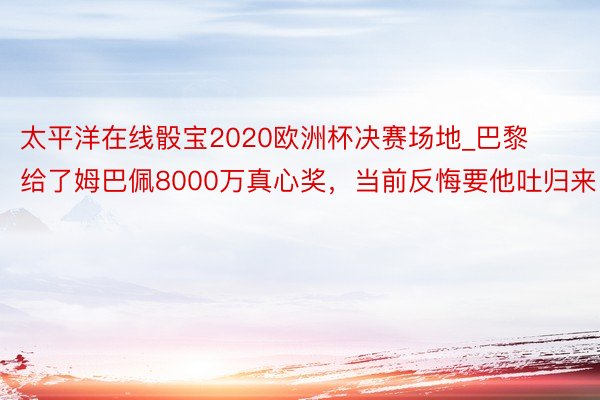 太平洋在线骰宝2020欧洲杯决赛场地_巴黎给了姆巴佩8000万真心奖,当前反悔要他吐归来