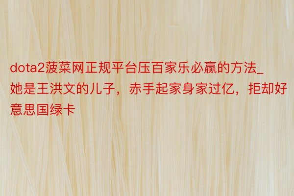 dota2菠菜网正规平台压百家乐必赢的方法_她是王洪文的儿子,赤手起家身家过亿,拒却好意思国绿卡